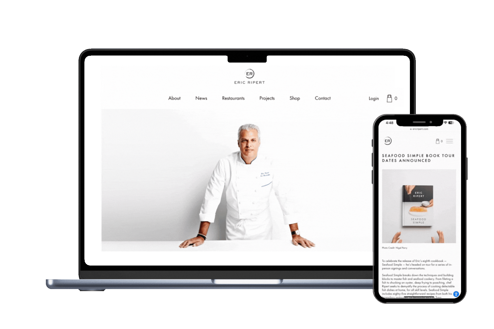 Designed and launched personal website for Eric Ripert in advance of his 8th cookbook release, Seafood Simple (NYT Best Seller)